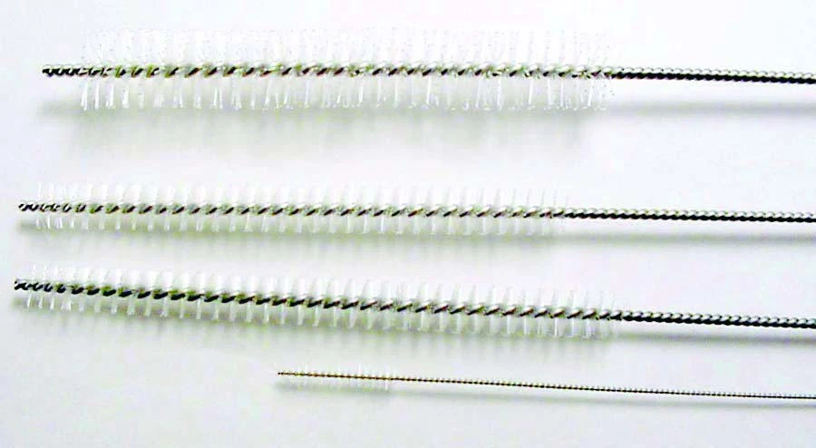 Wire centred brushes for efficient cleaning of different diameter endo tubes. Set of 4