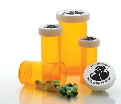 PET PRINT VIALS - Child-resistant function on all caps and included FREE in each case are 10% non-lock snap caps.