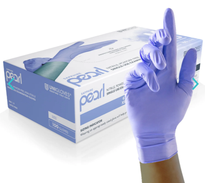 Not just pretty, Pearl Nitrile gloves are powder-free, puncture/ tear resistant single use and available in a range of colours including White, Green, Pink, Red, Violet, Sapphire, Opal and Yellow
