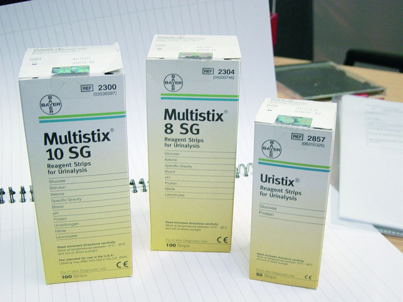 Tests Performed: b - BLOOD l - LEUCOCYTES u - UROBILINOGEN br - BILIRUBIN n - NITRITE sg - SPECIFIC GRAVITY g - GLUCOSE p - PROTEIN k - KETONES ph - P.H. · High quality reagent strips for urinalysis· Interact with Bayer Clinitek Status urine analyser