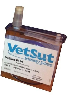 VetSut PGA Reels (Polyglycolic Acid) Braided multifilament absorbable approximately 30 days wound support Total absorption in 60-90 days Indications: Muscle, connective Tissue, Skin etc.