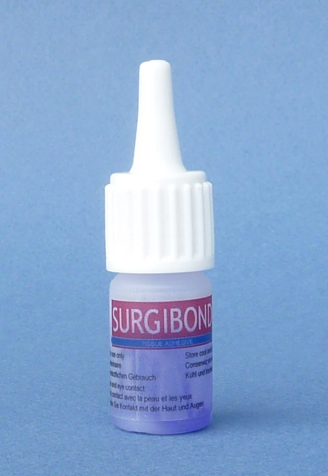 Surgibond Tissue Adhesive provides quality wound management. It polymerizes in seconds after contact with tissue and binds wound edges together so natural healing can occur. Good visibility due to blue colour Acts within seconds For additional suture support Stops Bleeding Protection against infections