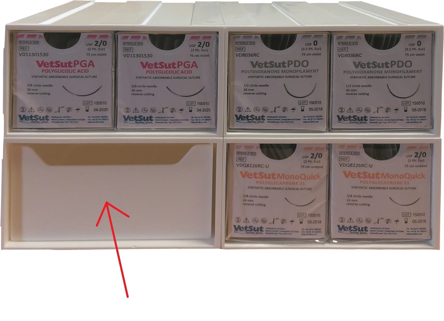 Keep your sutures clean and tidy with these stackable suture racks and draws (for needles and excess sizes). Durable, easy to clean suture rack - fit most common brands. Front loading rack can sit on your counter or trolley.