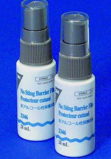 A sting-free, alcohol-free liquid barrier film that dries quickly to form a breathable, transparent coating on the skin.