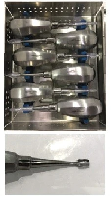 Winged Elevator Set Sizes 1.5 to 6.5mm with new stubby (shorter length and larger diameter) handle. The stubby handle allows you to be able to place your finger at the instrument tip giving you safer, greater feel and control of the extraction. The new handle design is ideal for small or large hands. Supplied in a steel autoclavable instrument holder/case
