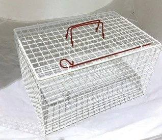 Strong PVC coated wire cat carrier 45x30x30cm with handle and rod closing mechanism