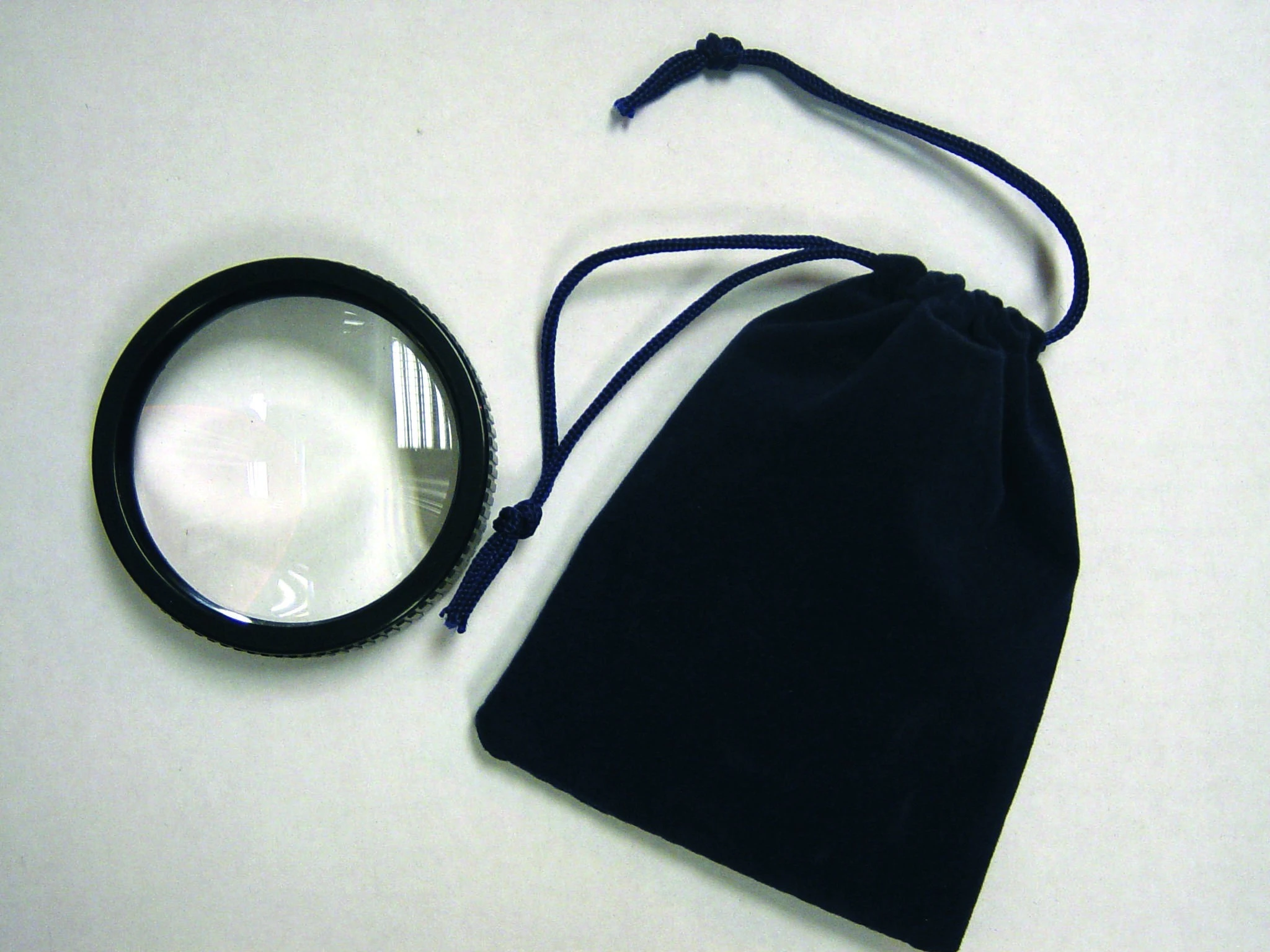 This lens allows simple visualisation of the retina / fundus with aid of a flashlight or otoscope light.