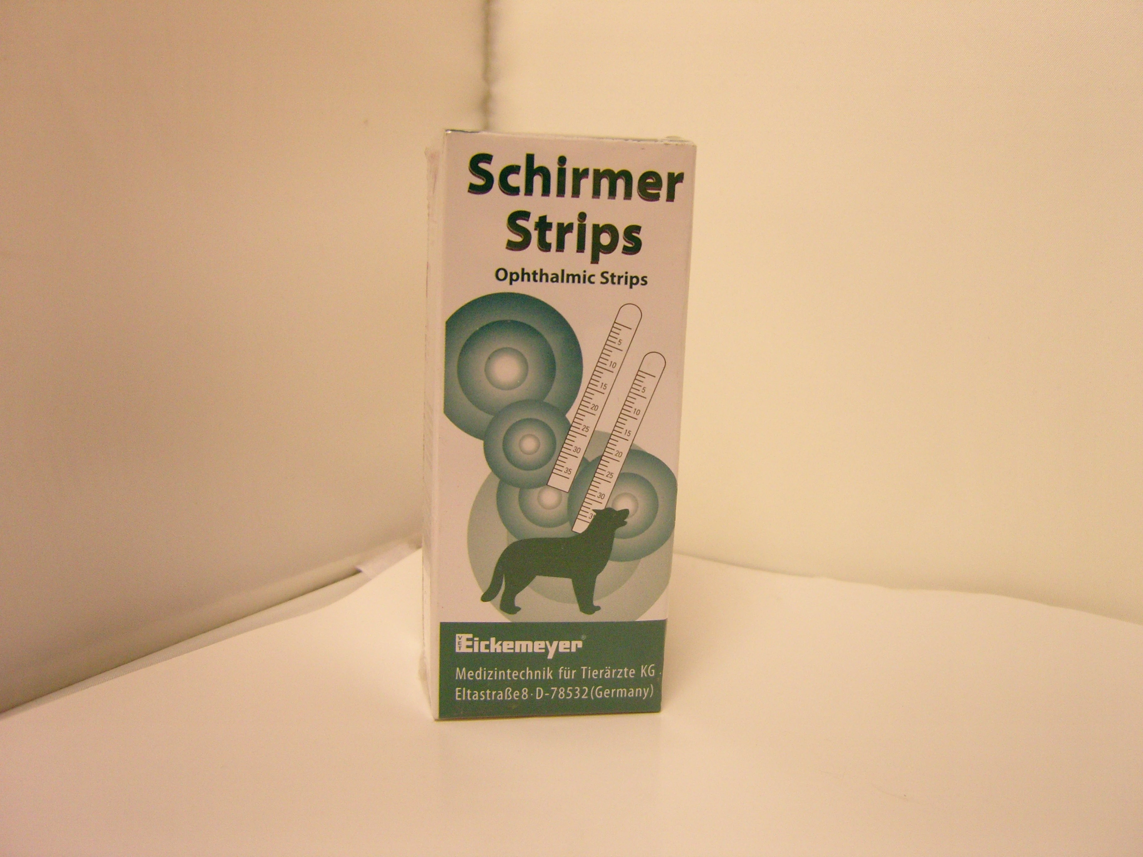 Schirmer s test uses paper strips inserted into the eye for several minutes to measure the production of tears. The exact procedure may vary somewhat. Both eyes are tested at the same time. Most often this test consists of placing a small strip of filter paper inside the lower eyelid (conjunctival sac) for 5 minutes. The paper is then removed and the amount of moisture is measured. Sometimes a topical anaesthetic is placed into the eye before the filter paper to prevent tearing due to the irritation from the paper. The use of the anaesthetic ensures that only basal tear secretion is being measured.