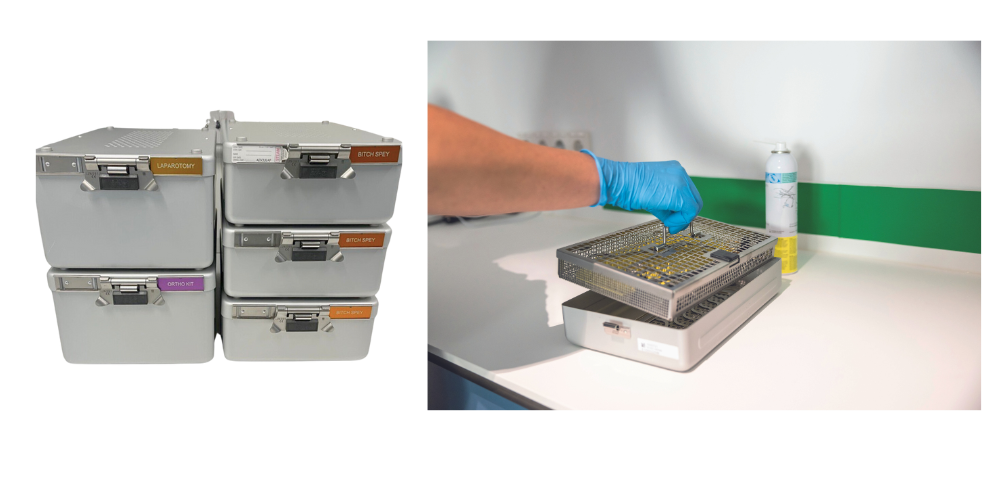 Aesculap veterinary sterile containers are ideal for the sterile preparation of your surgical kits and instruments, helping you to lower your operating expenses, support green purchasing initiatives and ultimately improve patient outcomes. Sterilization container system products by Aesculap are recognized quality and outstanding durability. Aesculap offers an extensive range of containers, baskets and accessories to meet all of your veterinary instrument sets and reprocessing requirements.