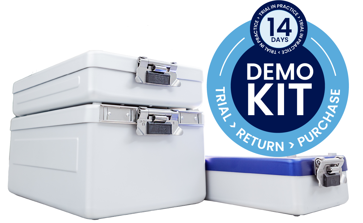We understand that every practice is unique in their requirements and kits. The Aesculap Veterinary Sterilisation Container Demo Kit allows practices to try the system for 2 weeks before ordering the kit boxes required for your specific practice. The demo kit includes 1 of each of the container kits so you can try them each out for size and ensure they fit your kits and autoclave.